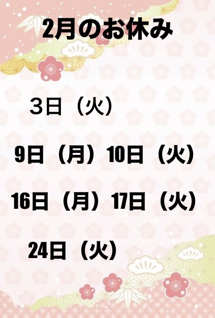 2月のお休み